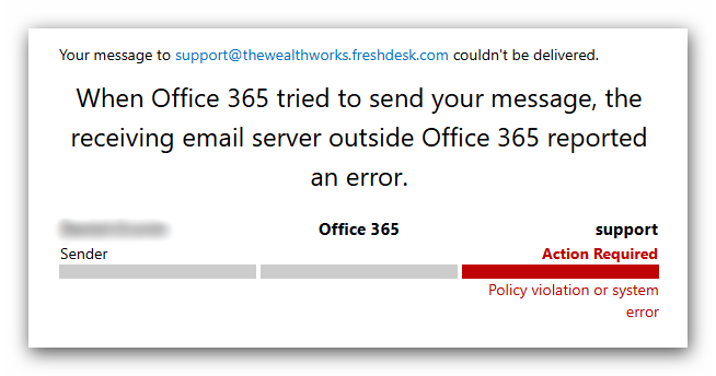 When Office 365 tried to send your message, the receiving email server outside Office 365 reported an error.