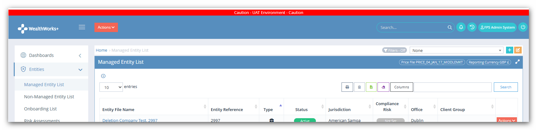 To identify the new UAT connection to WealthWorks+ as UAT, it is advisable to make use of our page banner settings. Within WealthWorks+ > Options > System Administration > Other Settings > Page Banner Settings, Page Banner Text, amend the text, e.g. 'Caution - UAT Environment - Caution'. You can also amend the Page Banner Background Colour, e.g. 'red'. Click Save to save the changes.
